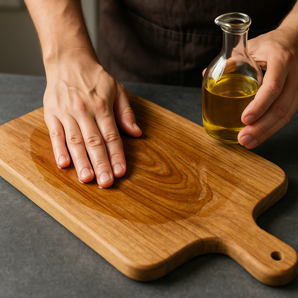 • Use food-grade mineral oil or board cream/wax (never use cooking oils — they go rancid).